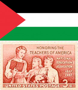 Image: Flag of Palestine, Orionist, previous versions by Makaristos, Mysid, etc., Public domain, via Wikimedia Commons, and Honoring the Teachers of America 3 cent stamp; Anastasiya Lvova, Public domain, via Wikimedia Commons